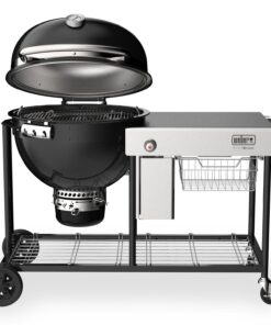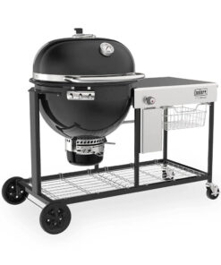 The Weber Kamado Grilling Center takes the classic design of the Weber kettle grill and enhances it with bigger size and added convenience. Made of premium-grade U.S. steel coated with porcelain enamel. this grill features a double-walled bowl and lid with an air insulated design. The Snap-Jet gas ignition system ensures easy lighting of the charcoal. and the two-position charcoal grate allows for improved searing or smoking. With a stainless steel diffuser plate for indirect low temperature cooking and a convenient work table with tool hooks and a charcoal storage bin. this grilling center is designed to make backyard grilling and smoking easy and enjoyable.