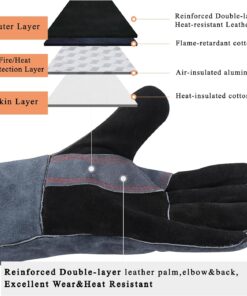 - DOUBLE-LAYER REINFORCED WING THUMB- Reinforced Wing thumb design provide the most extreme heat protection to handle high heat hazard jobs and make them not easy to wear out. Leather hanging loop provide convenience for hanging.