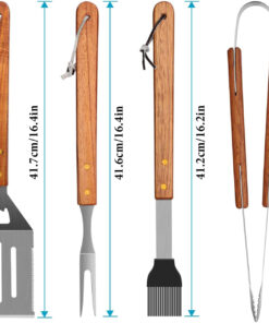 - High quality Wooded BBQ Accessories Grilling Tools. set of 4. is a great father’s day gift for your dad. father in law and grandpa. It containing a multi-functional spatula. a barbecue tong. a basting brush and a meat fork. It is an perfect tool set for doing all manner of barbecue’s activities.