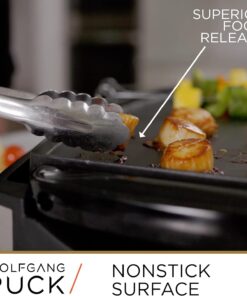 Have the best of both worlds with Wolfgang Puck’s Reversible Electric Grill Griddle. The oversized cooking plate provides enough room to cook for the whole family and the reversible functionality gives you endless options.