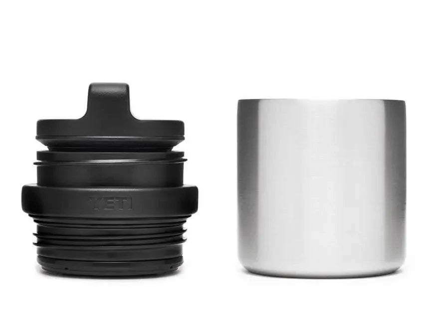 Always have a cup on hand with YETI’s 5 oz. cup cap for rambler bottles. In addition to keeping your favorite beverage hot or cold. this lid has a screw off 5 oz.. double wall stainless steel. vacuum insulated cup. Fits on any rambler bottle.